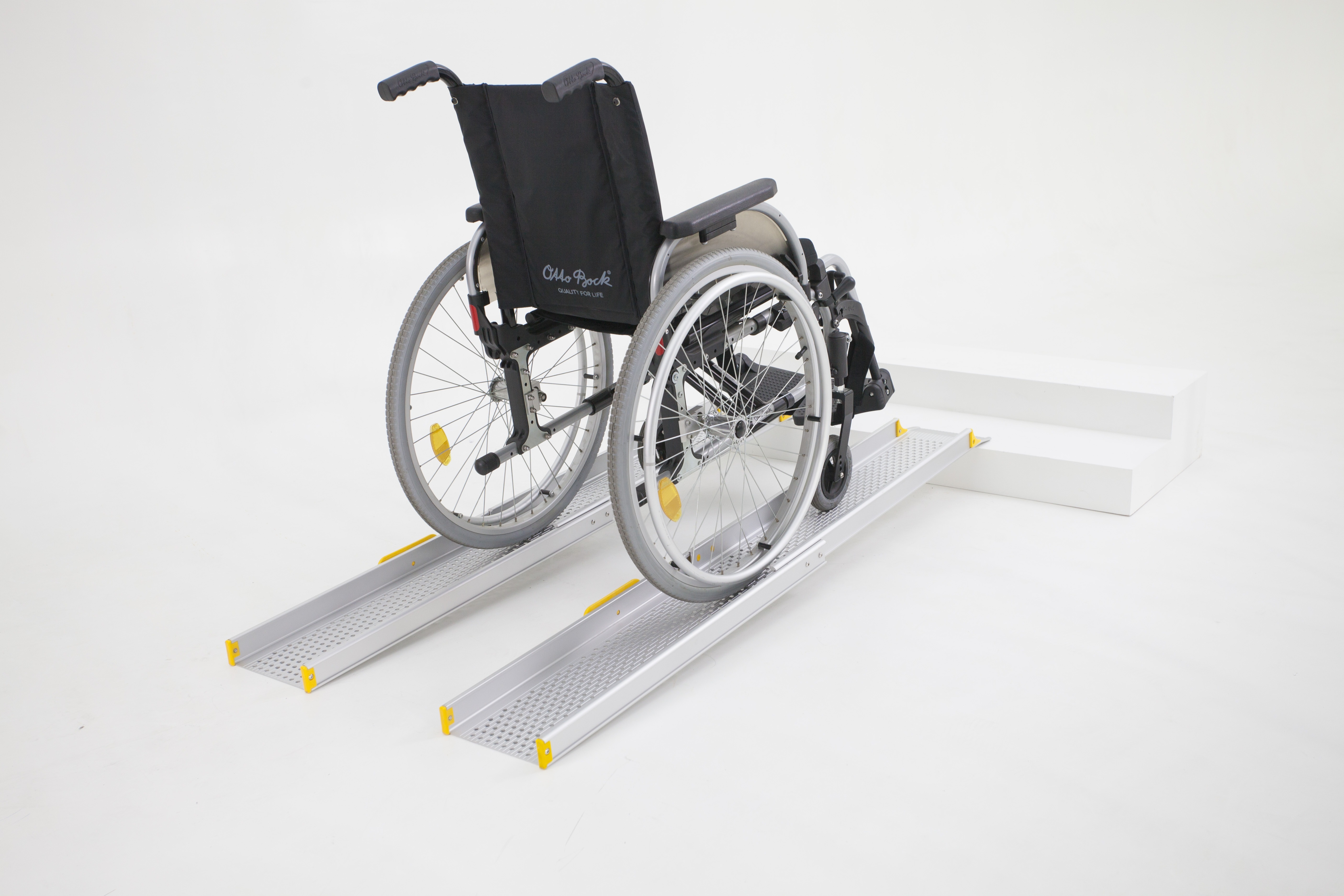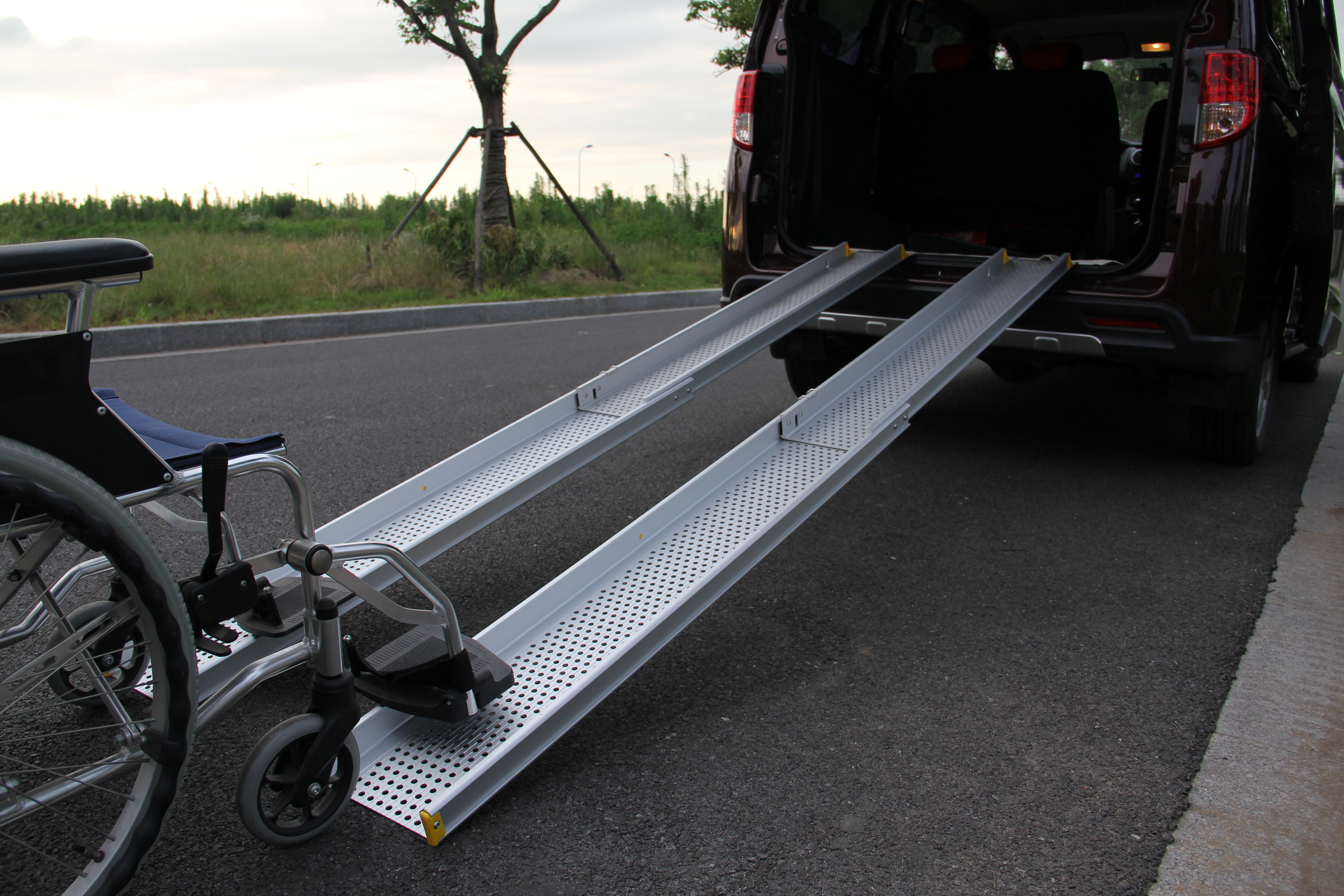 Two section telescopic wheelchair ramp can be stopped at any position.