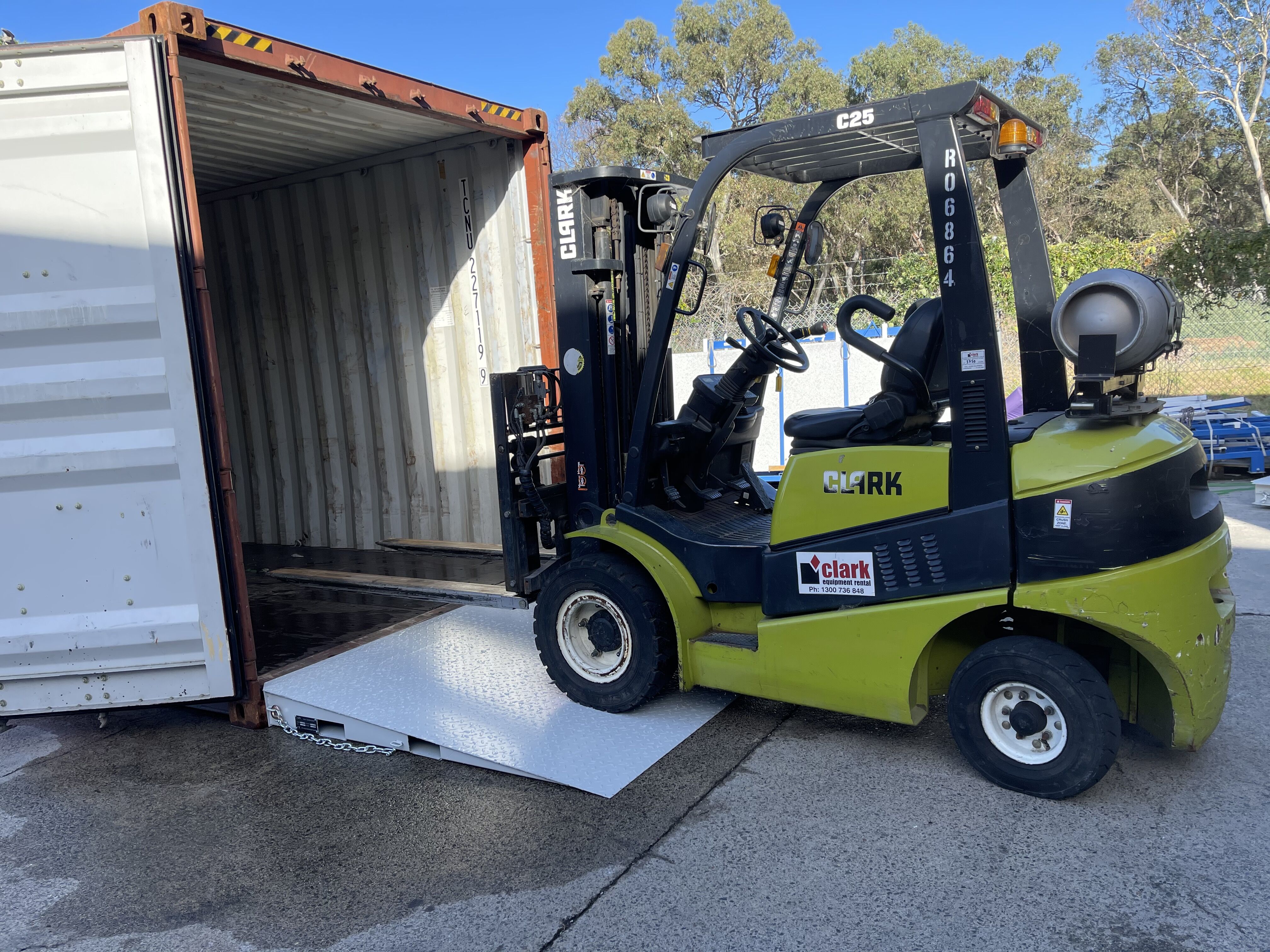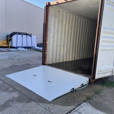 Jetland 2.3m container loading ramps are made from Powder coated steel with a checker plate deck. With a maximum load capacity of 8000kg for one piece.