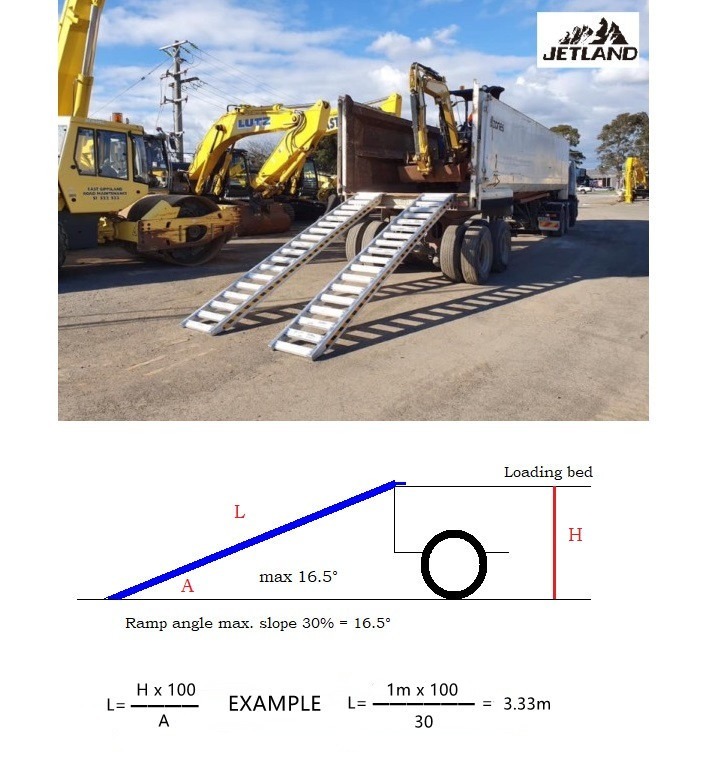 Choose a ramp with an internal width at least 5cm wider than the wheels or tracks of the loaded machinery.