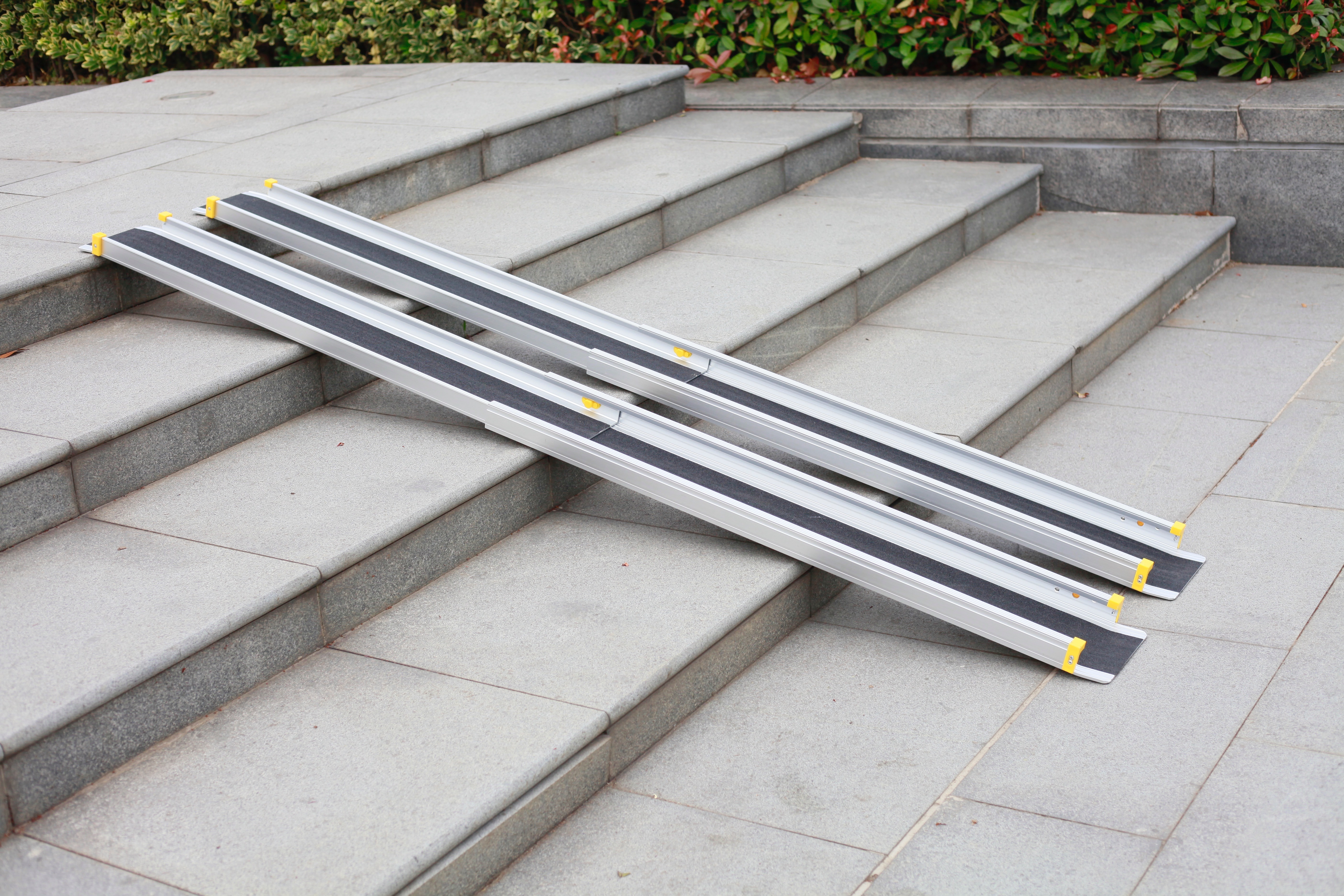 The telescoping wheelchair ramps able to extend or contract to meet any wheelchair requirements, these tracks easily deploy and lock with the simple push of a button.