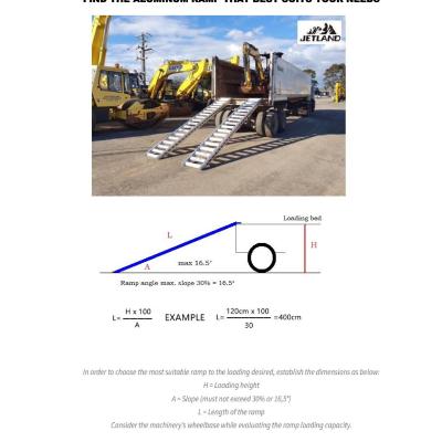 Choose a ramp with an internal width at least 5cm wider than the wheels or tracks of the loaded machinery.